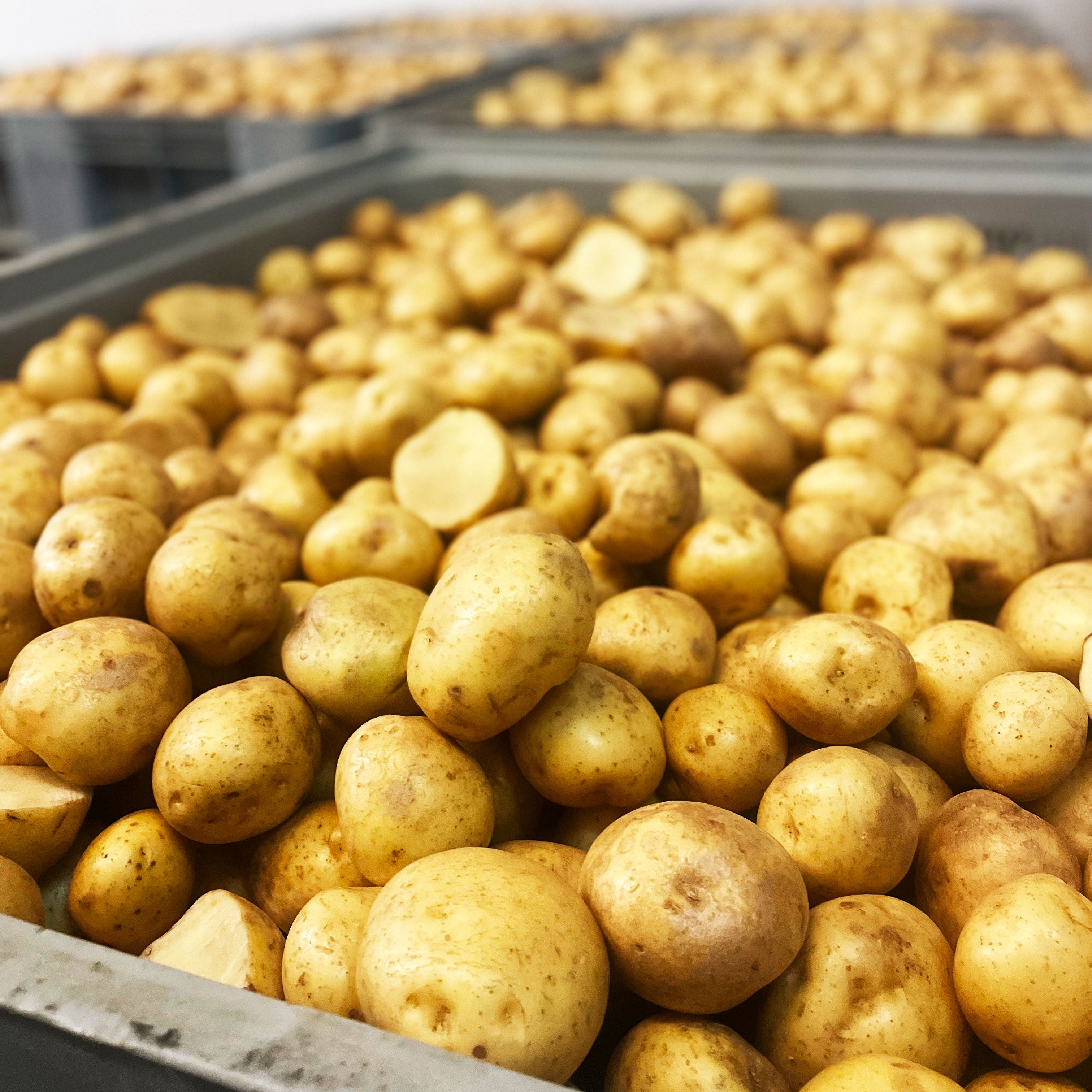 We ship them in crates over to North London where they're hand-cooked and packed into our home compostable bags ready to be shipped out from our warehouse. We sell every crisp we cook, so we have zero food waste.