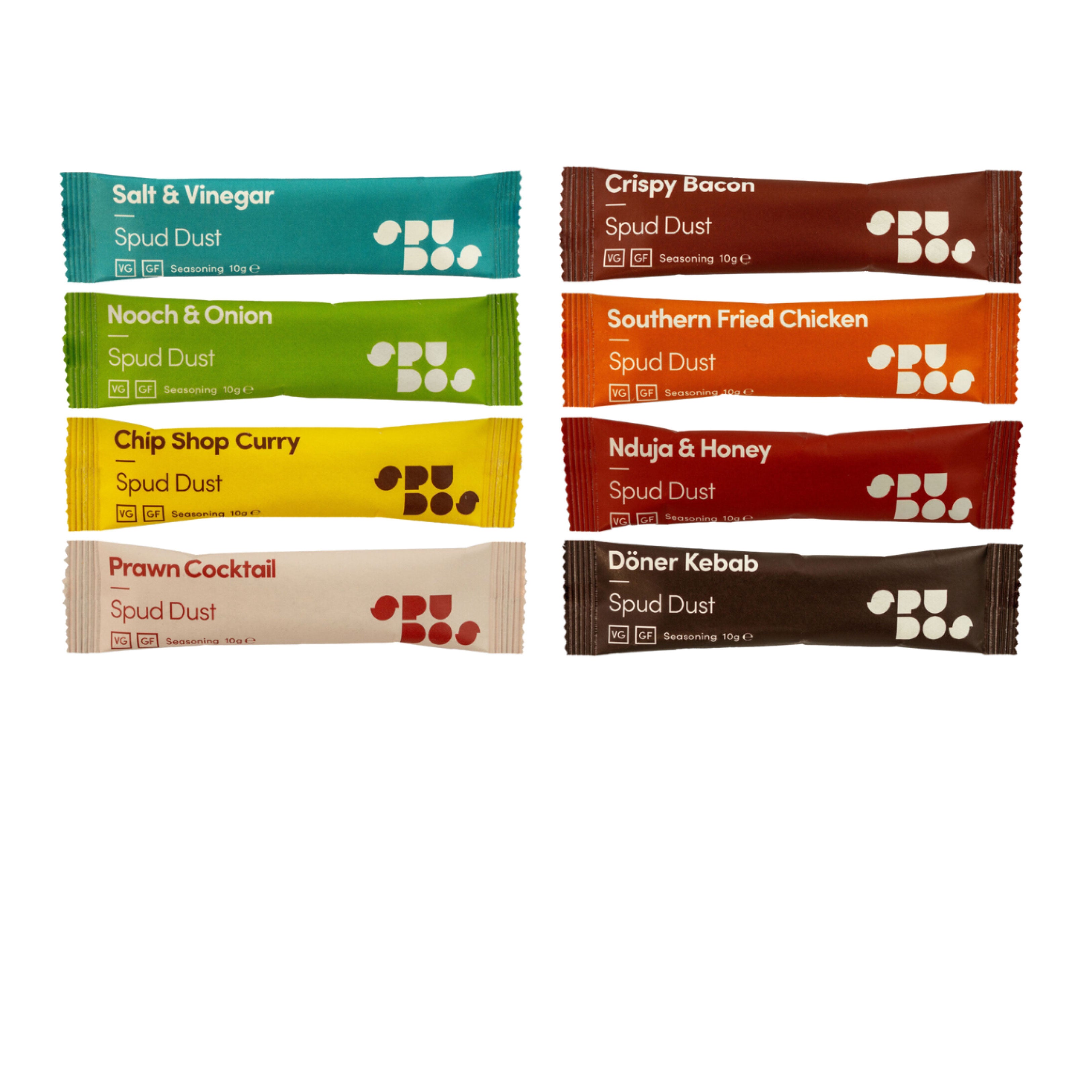 Our Spud Dust is also produced right here in the UK, delivered to us in recyclable plastic bags. Our shakers are made from 30% recycled plastic that can be recycled again and the labels on our shakers are certified ocean bound plastic. We will be offering Spud Dust refills again in the near future so you can reuse your shakers, but we're still working on new refill bags that are as sustainable and resilient as our crisp bags.